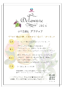 【Delaware 2024】カテゴリ:白ワイン原材料:ぶどう(山形県産)/酸化防止剤(亜硫酸塩)アルコール度数:13%栓:スクリューキャップ容量:750ml梱包サイズ:125×360×93梱包形態:箱(1本/箱)※直射日光を避け涼しい場所での保存をお願いします。※瓶底に葡萄由来の自然成分が沈殿する場合がございます。ゆっくりと注いで沈めるようにしてお召し上がりください。